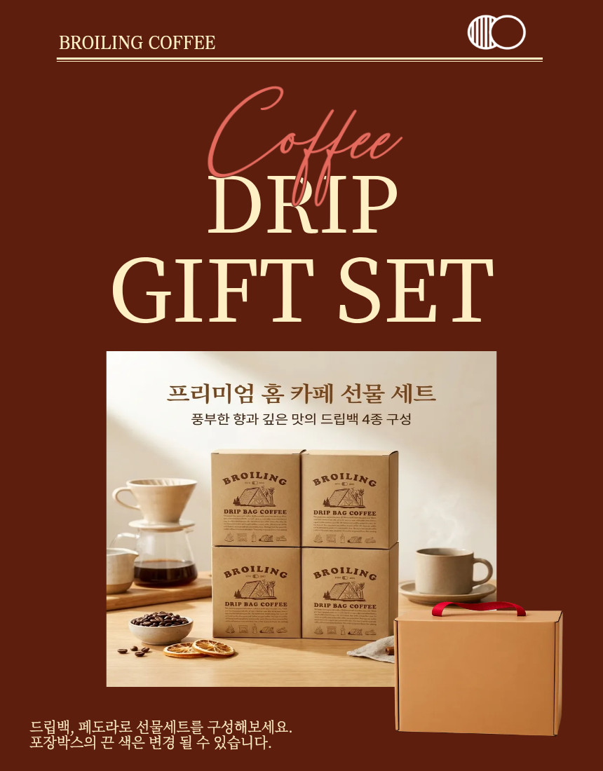 드립백 페도라 박스에 외부 박스(선물박스)로 포장하여 보내드립니다.